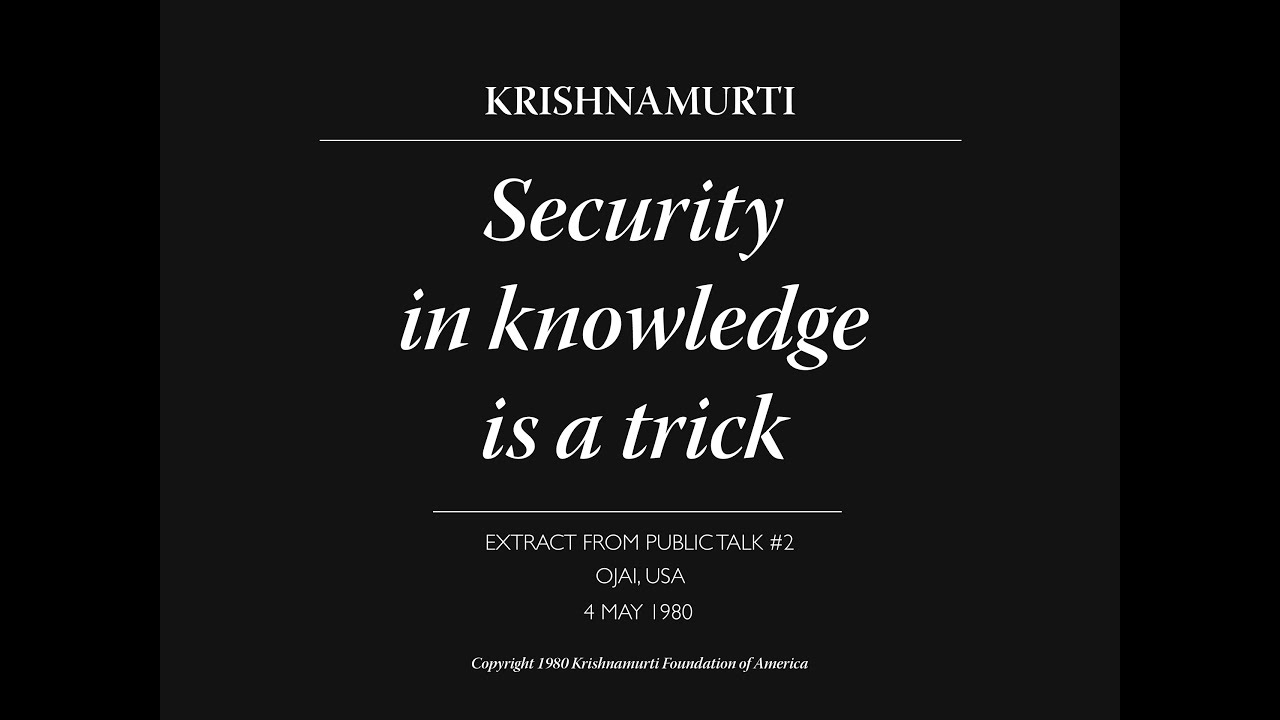 SUBTITLES AVAILABLE IN: ENGLISH Security in knowledge is a trick | J. Krishnamurti Extract from the second talk in Ojai, 1980. — This channel is managed by the Krishnamurti Foundation