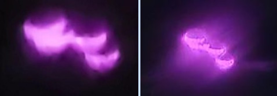 1-11-24 FLIGHT FROM ENGLAND AND POLAND Four hot pink UFOs were captured on video on January 11, 2024 by Denisa Tanase (L), an airline flight attendant with Wizz Air based